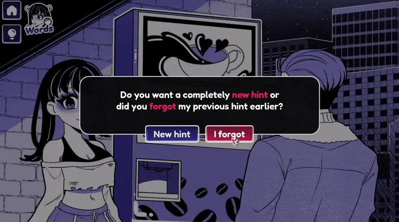 She reacts differently depending on what you give her. Sometimes she smiles. Sometimes she winces. Sometimes she vanishes, only to return changed. Sometimes she doesn’t come back at all. And if you choose to drink, the machine reacts to you instead. Don’t expect a fair trade. There are no instructions. No quests. No markers to follow. You’re not told what the machine is or what it wants. You’re left to experiment. Test words. Try feelings. Push the machine. Break it. Or let it break you. This is not a game about winning. It’s not even about understanding. It’s about curiosity. It’s about how far you’re willing to go. About what you choose to give her. What you choose to give yourself. And what happens after. There is no manual. There is no ending. There is only the girl, the machine, and what you type next. So go ahead. Try a word. Then drink.